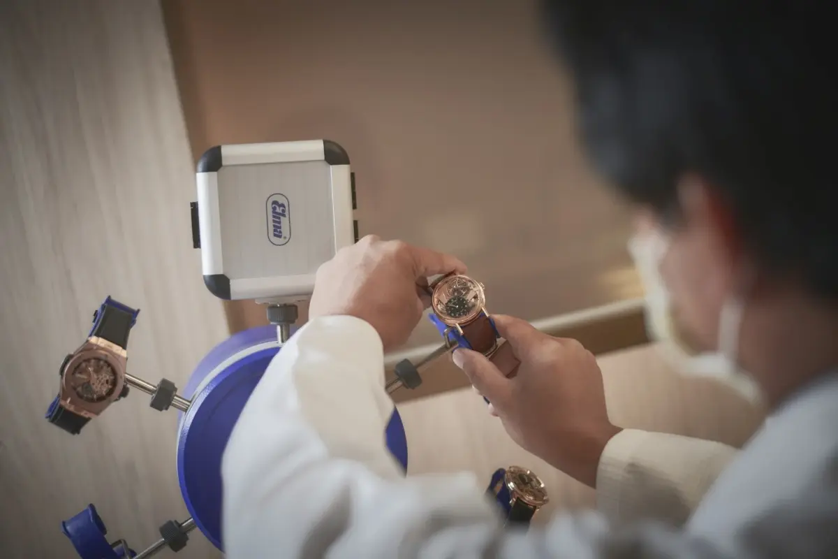 东方表行腕表维修服务中心位于中环核心地段,自设的腕表维修工坊,按照严格的瑞士及德国制表标准设计及打造,更获瑞士及德国制表专家团队确认,确保符合优秀卓越的制表规格。维修中心设备齐全,特别从海外购置的高科技仪器,包括全密封测试仪、石英机芯功能指数计、自转仪及机械表测试仪等。