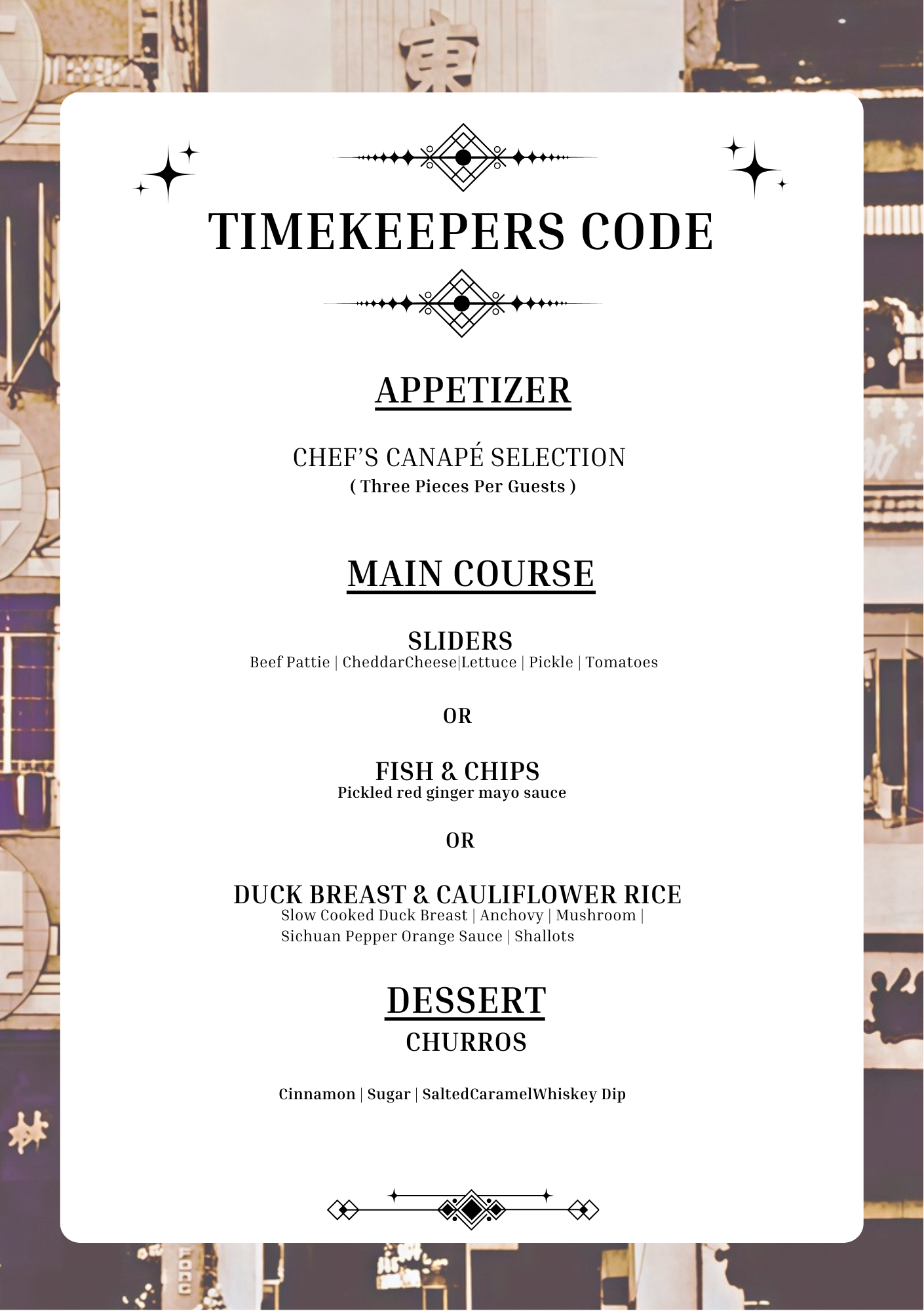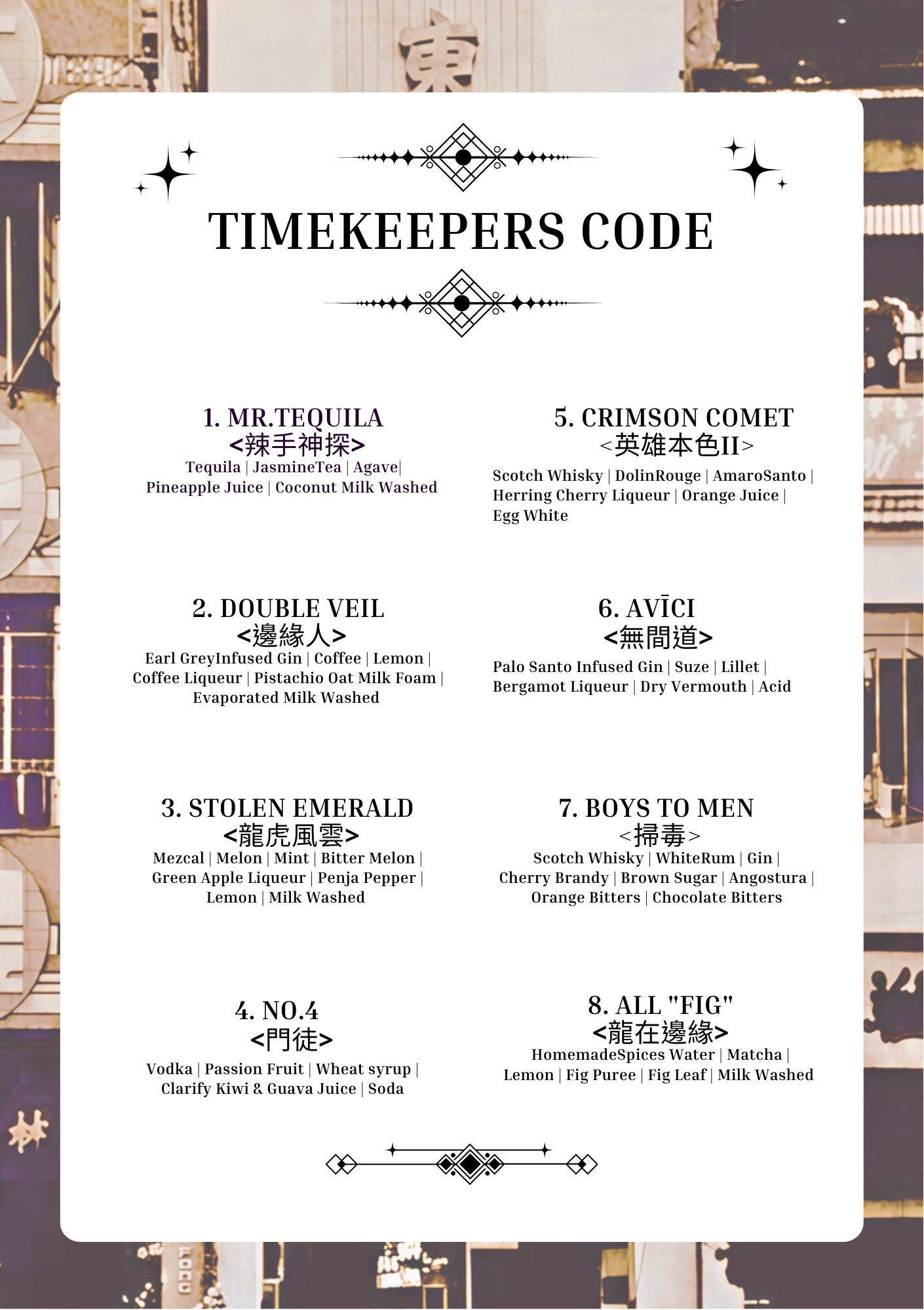东方表行 X 001 Bar「Timekeepers Code Secret Dining」菜单: