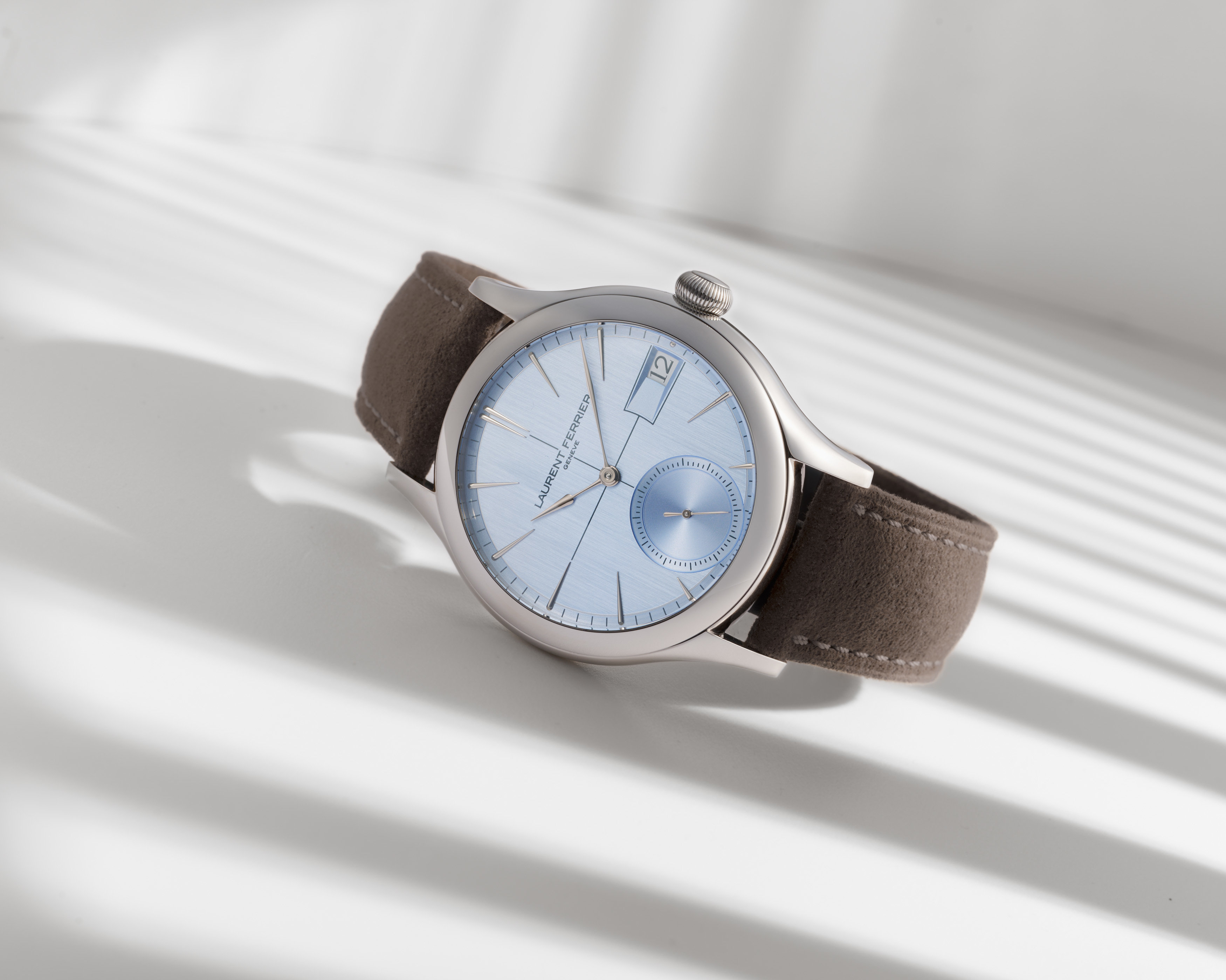 Laurent Ferrier推出全新版本的Classic Auto,搭配独特的「Horizon Blue地平线蓝色」表盘。表盘的蓝色调灵感源自大自然,随着光线变化,表面会出现微妙的紫罗兰色调,为腕表增添额外的层次感。