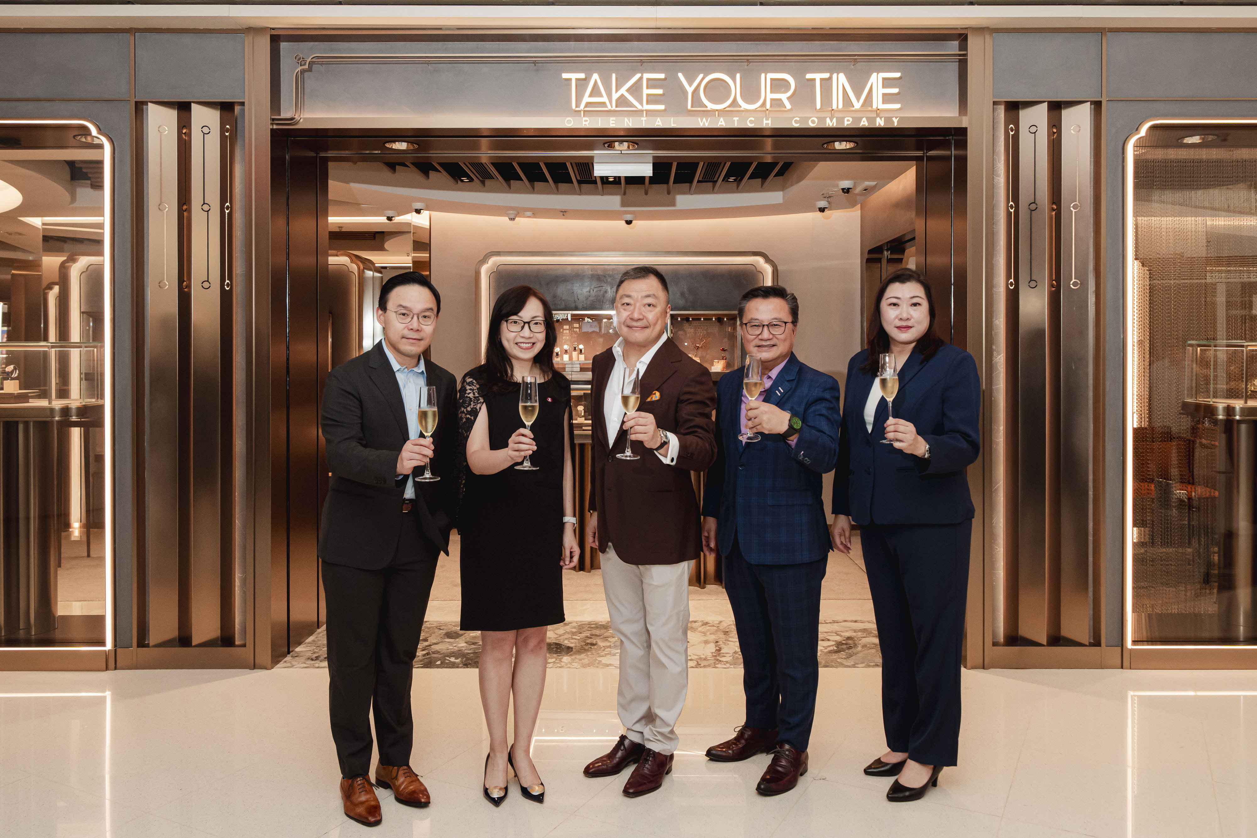 东方表行特取址糅合了奢华与革新的ELEMENTS圆方开设首间Watch Gallery概念店「TAKE YOUR TIME ORIENTAL WATCH COMPANY」,定期推出不同主题——每季以崭新概念重新演绎时计艺术,为东方表行谱写新篇章。为庆祝新店开业举办了简单而隆重的开业剪彩仪式,(由左至右) 东方表行(大中华区)市场推广及数码营销主管曾子禧先生、港铁公司总经理-投资物业陈宛冰女士、东方表行董事总经理杨衍杰先生、东方表行集团营运总监陈仕荣先生及概念店经理谢碧琪女士出席仪式,与一众贵宾共同见证重要时刻。