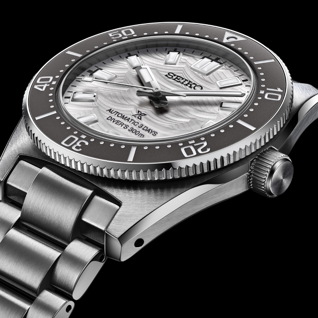 此外,我们还将展出Seiko潜水表60周年纪念限量版SPB511J1,该款腕表的波浪标志象徵着Seiko潜水表的高可靠性及卓越技术,并在表盘上展现动感的浮雕图案,呼应汹涌的海洋力量。其银色表盘致敬1965年首款潜水表,搭配精致的灰色表圈,增强整体设计的奢华感。